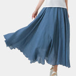 Обновете летния си гардероб с тази дълга пола от лека материя. Широката силуета и естественото движение създават ефирен вид, който впечатлява с всяка стъпка.