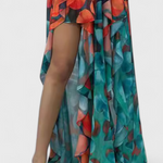 Скулптурна присъствие с романтичен допир. Роклята Зринка комбинира меки слоеве волани с страничен отвор и деликатен градиент на цвета, създавайки дизайн, който елегантно тече и се откроява без усилие. Нейната структура без ръкави и кройка до глезените я правят идеален избор за летни събития, изпълнени със стил.