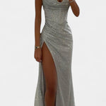 Дръзка, драматична и елегантна, роклята Инес е парче, проектирано да блести на всяко специално събитие. Нейната тясна силуета на русалка, корсетният горен част и високият разрез на бедрото създават впечатляващ вид, който подчертава изтънчеността. Спагети презрамките и блестящият завършек допълват модерната и Glamour естетика.