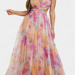 Макси рокля Магдалена с цветен десен и V-образно деколте